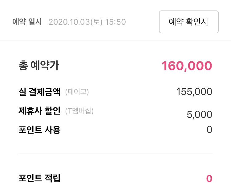 예약 일시: 2020년 10월 03일 토요일 ~ 10월 04일 일요일 (총 1박)