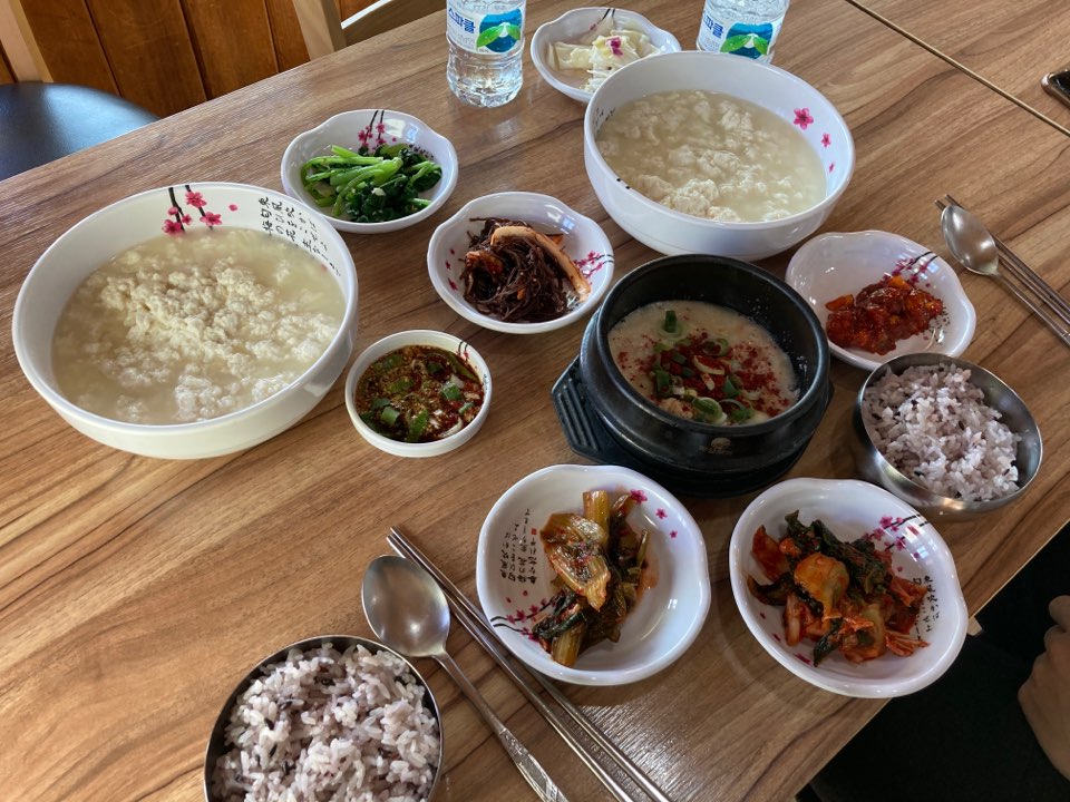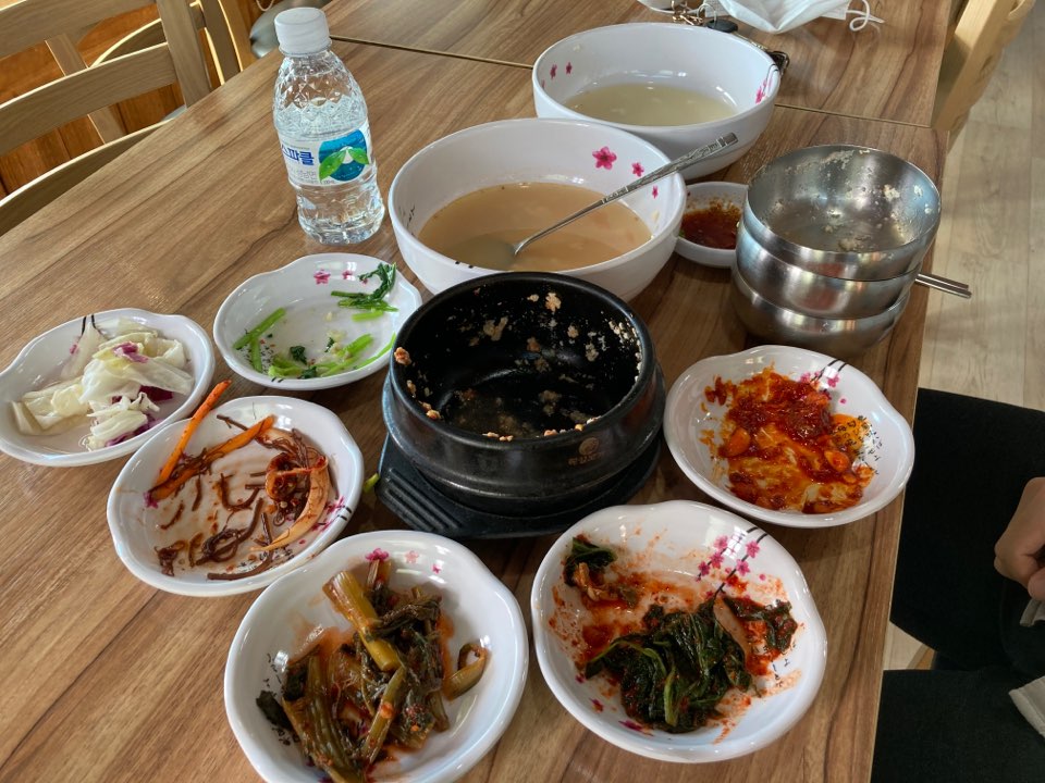 반찬도 그렇고, 순두부, 저기 보이는 뚝배기에 나오는 콩비지까지